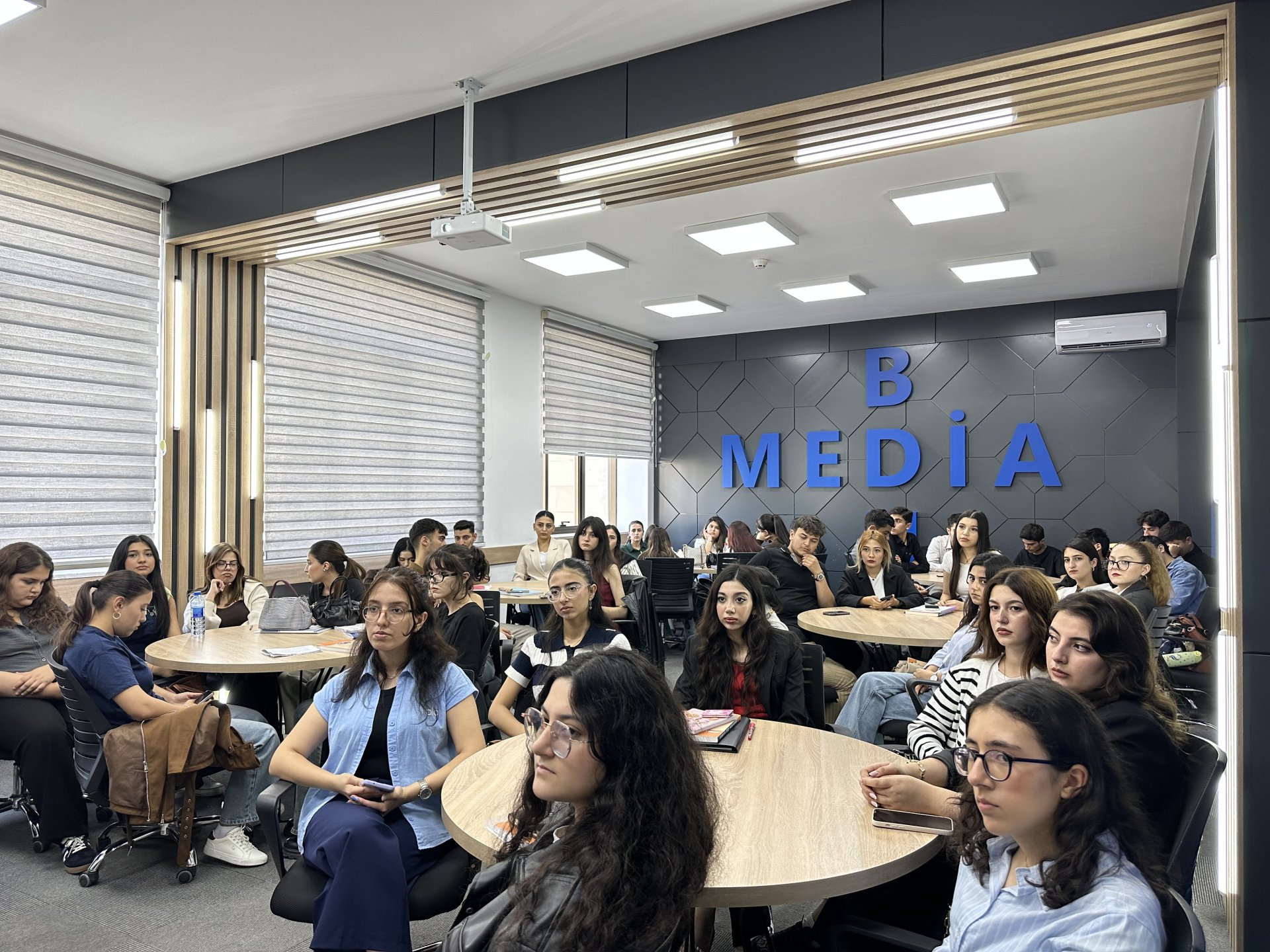 Sonda tələbələrin iştirakı ilə interaktiv müzakirə aparılıb, insan hüquqlarının qorunması və jurnalist fəaliyyətində hüquqi yanaşmalarla bağlı müxtəlif suallara cavab verilib.